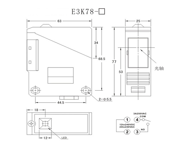 温度范围-25—+60℃, +23℃时、±10%检测距离以内