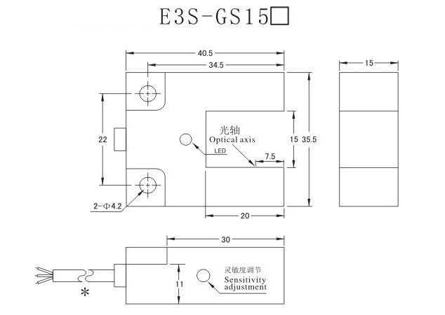 温度范围-30—+65℃, +23℃时、±15%检测距离以内