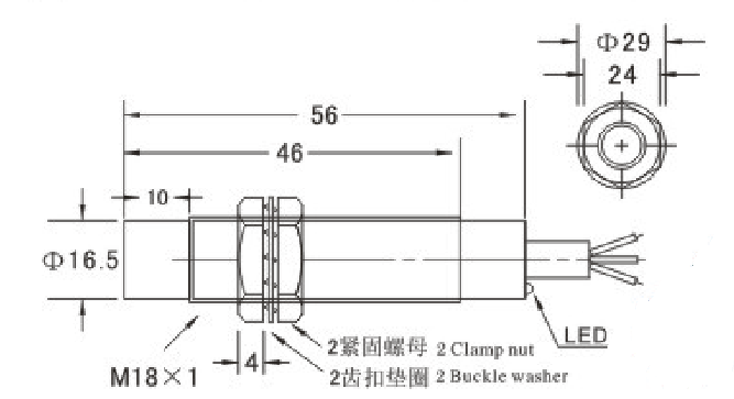 温度范围-30—+65℃, +23℃时、±15%检测距离以内
