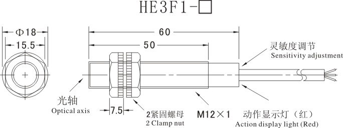 温度范围-25—+60℃, +23℃时、±10%检测距离以内