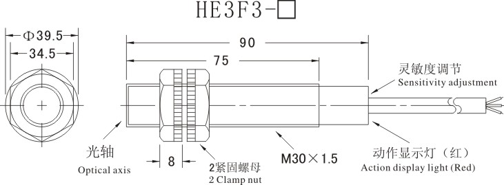 温度范围-30—+65℃, +23℃时、±15%检测距离以内