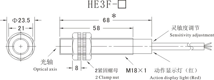 温度范围-25—+60℃, +23℃时、±10%检测距离以内
